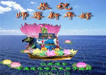 【明慧网二零二零年一月二十一日】 江苏省连云港市一学法小组大法弟子恭祝慈悲伟大的师尊新年快乐!