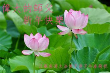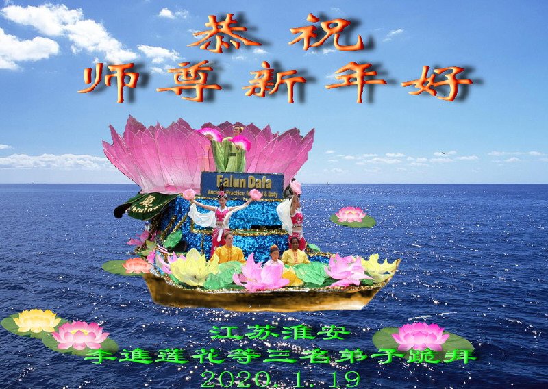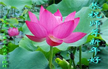 恭祝师尊新年快乐!感谢师尊救度之恩! 江苏淮安一学法小组全体大法弟子跪拜 江苏淮安李進莲花等三名大法弟子恭祝师尊过年好!