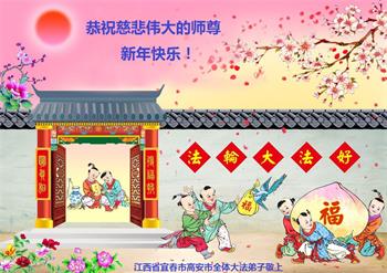 江西省宜春市高安市全体大法弟子恭祝慈悲伟大的师尊新年快乐! 江西省宜春市高安市一大法弟子全家恭祝慈悲伟大的师尊新年快乐!