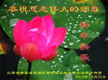 江西省南昌市一家庭学法小组大法弟子恭祝慈悲伟大师尊新年快乐!