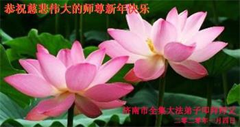 山东省济南市全体大法弟子恭祝慈悲伟大的师尊新年快乐!