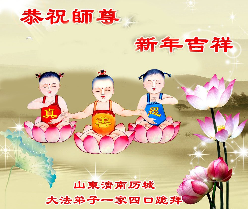 山东济南一大法弟子全家恭祝师尊新年快乐!
