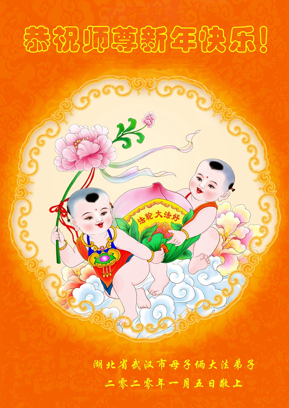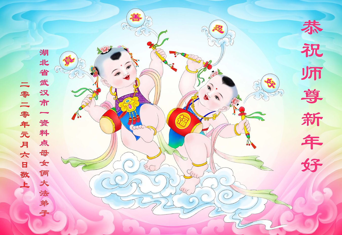 【明慧网二零二零年一月二十一日】 湖北省武汉市母子俩大法弟子恭祝师尊新年快乐!