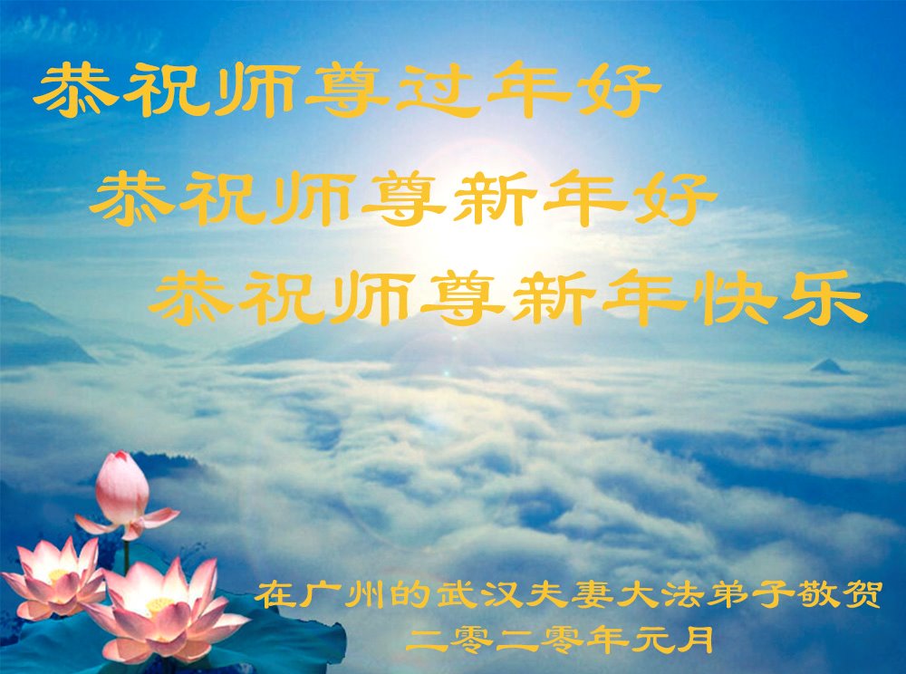 在广州的湖北省武汉夫妻大法弟子恭祝师尊新年好!