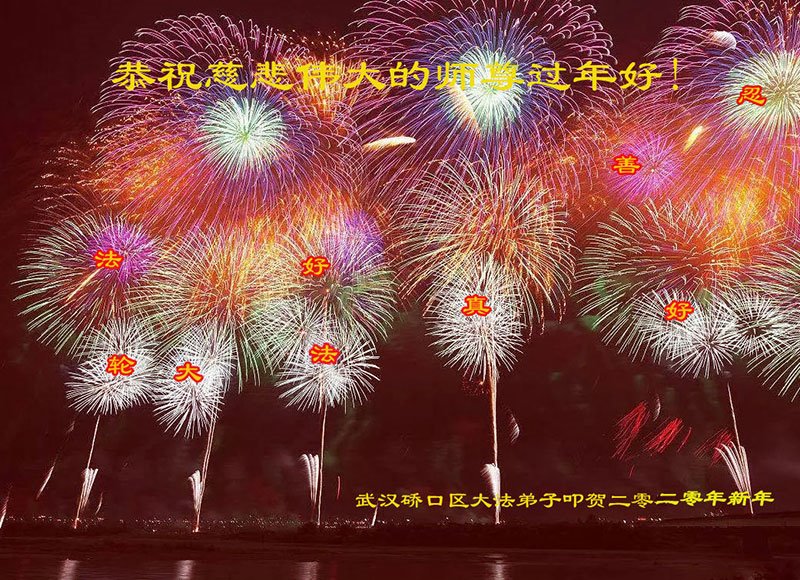 万焰齐众放,邪魔全灭尽。天上人间贺:法轮大法好!真善忍好!师尊过年好!师尊辛苦了! 湖北武汉全体大法弟子恭祝慈悲伟大的师尊过年好!