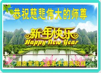 尊敬的师父好!我市修炼的人不多,但是我们真修的一直走在助师正法的路上,不管邪恶怎样疯狂、干扰、迫害,我们都能坚持,有师尊的加持保护,我们会做好三件事,救度世人,感恩师父的慈悲苦度!弟子更加精進! 湖南省常德市临澧县大法弟子恭祝师尊过年好!