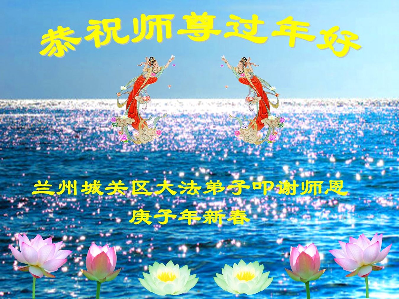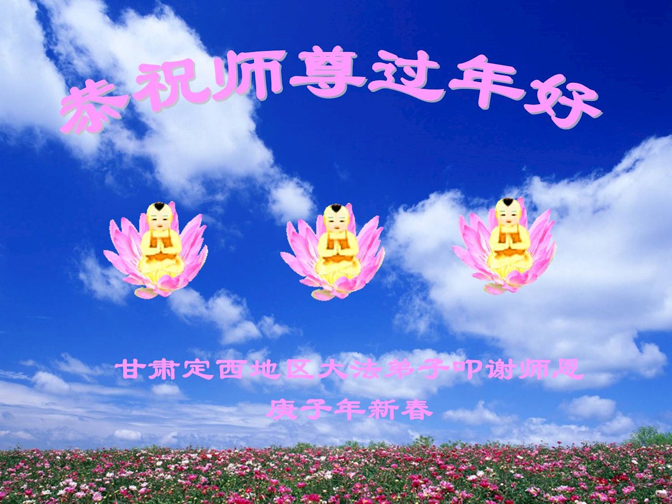 恭祝慈悲伟大的师父过年好!弟子叩拜师尊! 甘肃省兰州市安宁区全体大法弟子恭祝慈悲伟大的师尊过年好!