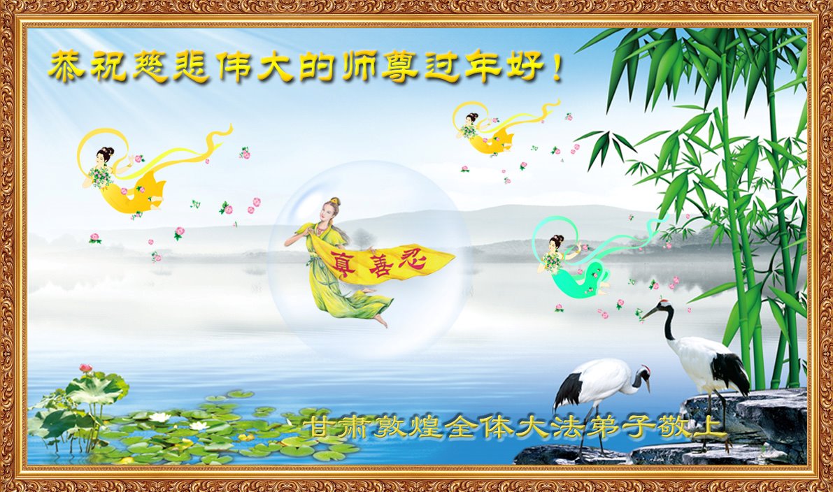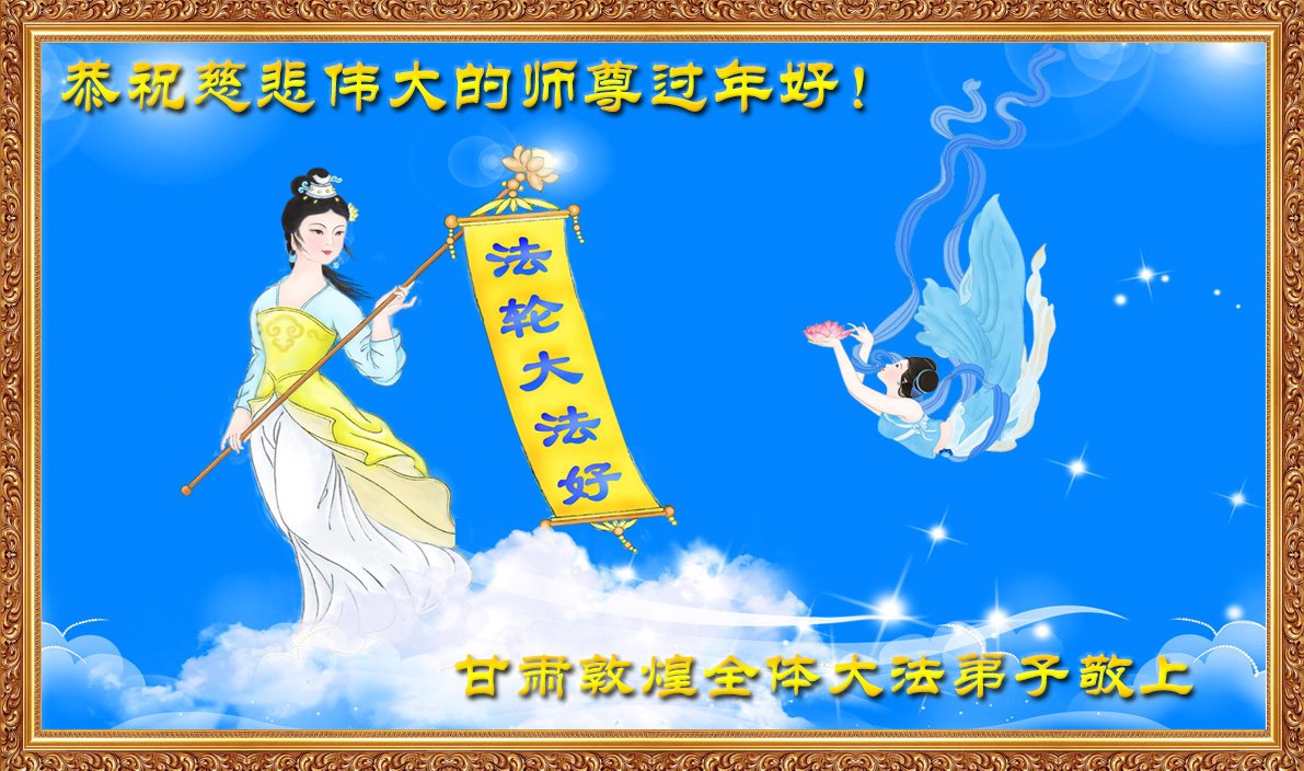 恭祝慈悲伟大的师尊过年好! 您为大法弟子及众生操尽了心,我们无法用语言表达对师尊的无限感恩,也永远报答不了师尊的救度大恩,只能以百分之百的虔诚谨遵师尊的教诲,做好三件事,救度世人,完成我们的历史使命,兑现久远的誓约,跟师尊回家。师尊辛苦了! 合十叩拜! 甘肃省酒泉市敦煌市全体大法弟子敬上 2020年1月13日 甘肃省酒泉市全体大法弟子恭祝师尊新年好!