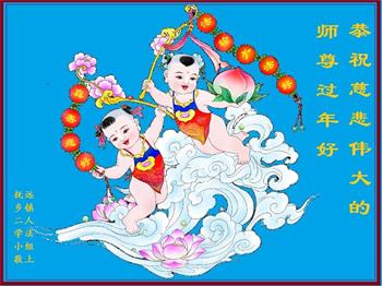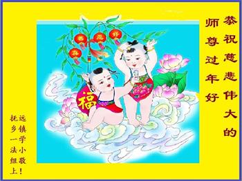 感恩师父慈悲苦度,我们用语言根本就表达不尽对师父的无限感恩,师父给安排的路,我们一定要走到底,做好三件事,跟师父返家园。 天津市武清区某乡镇全体大法弟子恭祝师尊新年快乐!谢谢师父慈悲救度!