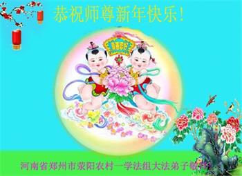 河南省郑州市荥阳一农村学组大法弟子给师尊拜年!恭祝师过年好!新年快乐!