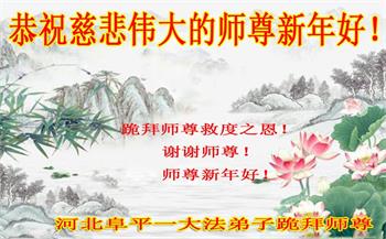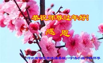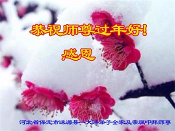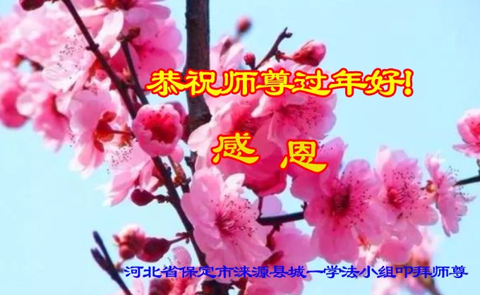 我们自从走入大法,就溶入师父您所给予的正能量场之中,使我们的心、身都得到康复,重见光明,万物生机勃勃。我们都感恩师尊的慈悲救度与保护!我们继续做好三件事,早日兑现誓约,跟师尊回家。叩拜师尊! 河北省保定市涞源县城一学法小组大法弟子恭祝师尊过年好!