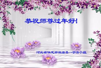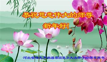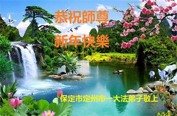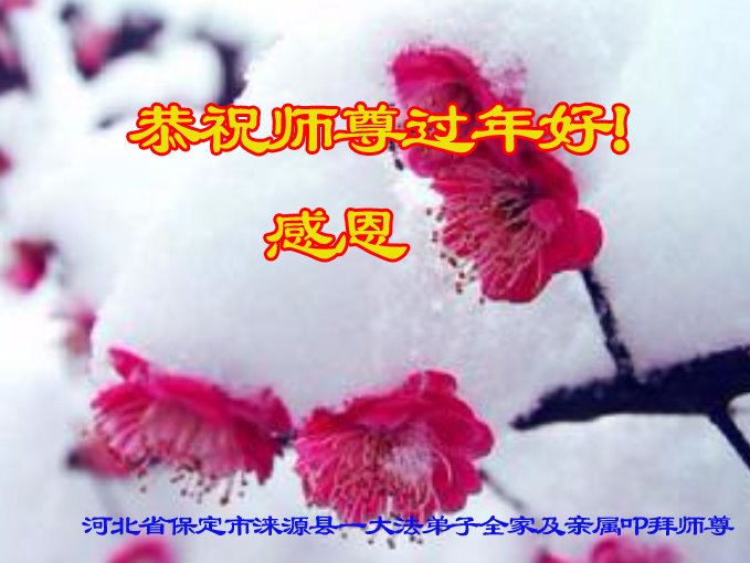师尊您好!您辛苦了!感恩师尊慈悲度救!愿师尊新年快乐!涞源县团堡乡大法弟子叩拜师尊! 河北省保定市定州市一大法弟子恭祝师尊新年快乐!
