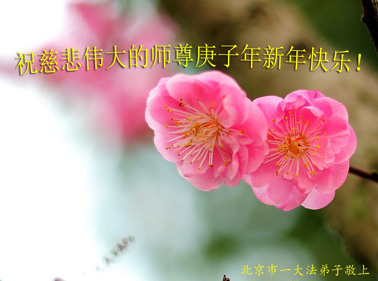 寒梅傲雪迎春 弟子想念师尊 法正乾坤除尘 苍宇感恩师尊 佛恩浩荡普度 众生叩谢师尊 慈悲再造新宇 普天颂赞师尊 北京大法弟子恭祝师尊新年快乐!