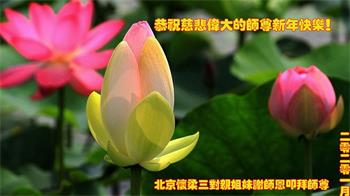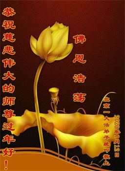 师父您好:弟子想念师父,感谢师父救度之恩! 弟子一定在剩下的时间里努力精進,做好三件事。 北京市全体大法弟子恭祝慈悲伟大的师尊过年好!