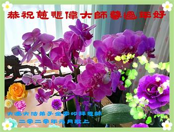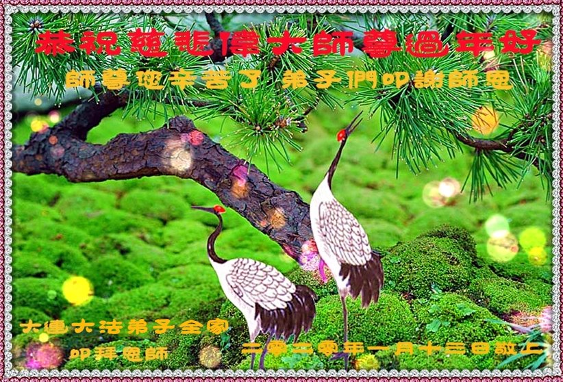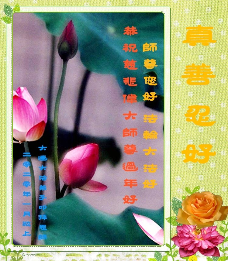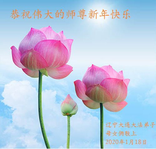 二零二零年新春佳节之际,恭祝慈悲伟大的师尊节日快乐!师尊过年好!我们全家能在有生之年得到伟大师尊的慈悲苦度,我又是正法时期的大法弟子,我们真是太幸运了!自从一九九七年开始走入大法修炼,以法为师修炼自己,在这二十多年来,弟子和家人以及各家几十口人都受益了,受到师尊的保护和救赎,师恩浩荡,弟子和家人对师尊的感恩之心无法用语言表达,只有在此日此刻叩拜师尊,跪拜师尊,诚心感恩师尊,谢谢伟大的师尊,您太辛苦了!师尊为弟子及众生费尽了多少心血,弟子无以为报,只能时刻铭记师尊的教诲,用法来严格要求自己,正念正行,走好师尊给弟子安排的路,修好修正自己,助师正法,救更多的有缘人。弟子必须做好自己应该做好的一切,不辜负师尊的慈悲苦度,让师尊放心。 辽宁大连一母女俩大法弟子恭祝伟大的师尊新年快乐!