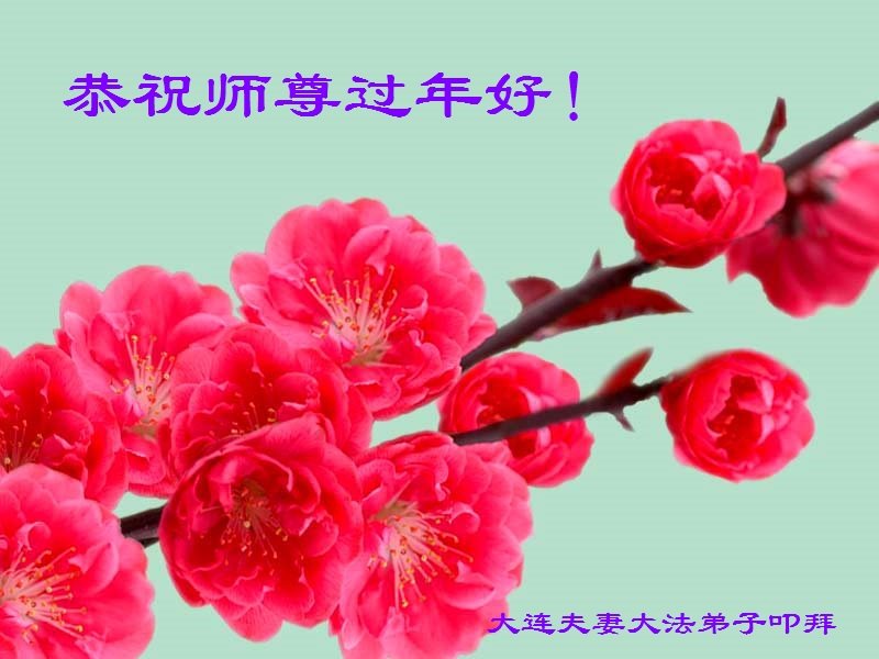 辽宁省大连市一大法弟子及全家老少共同敬祝慈悲伟大的师尊过年好!