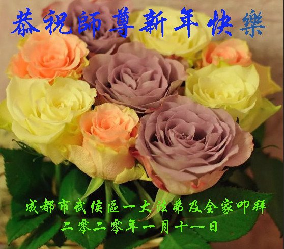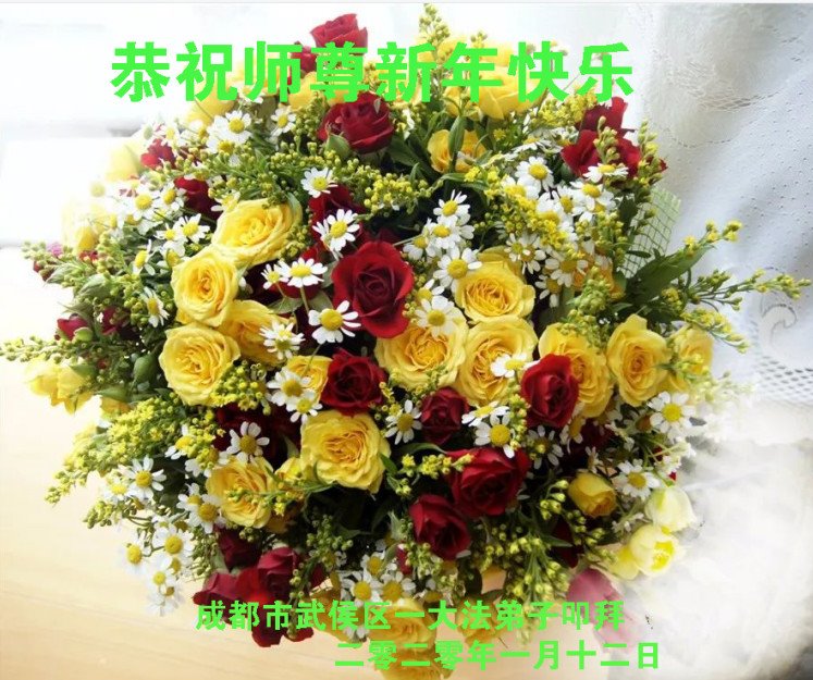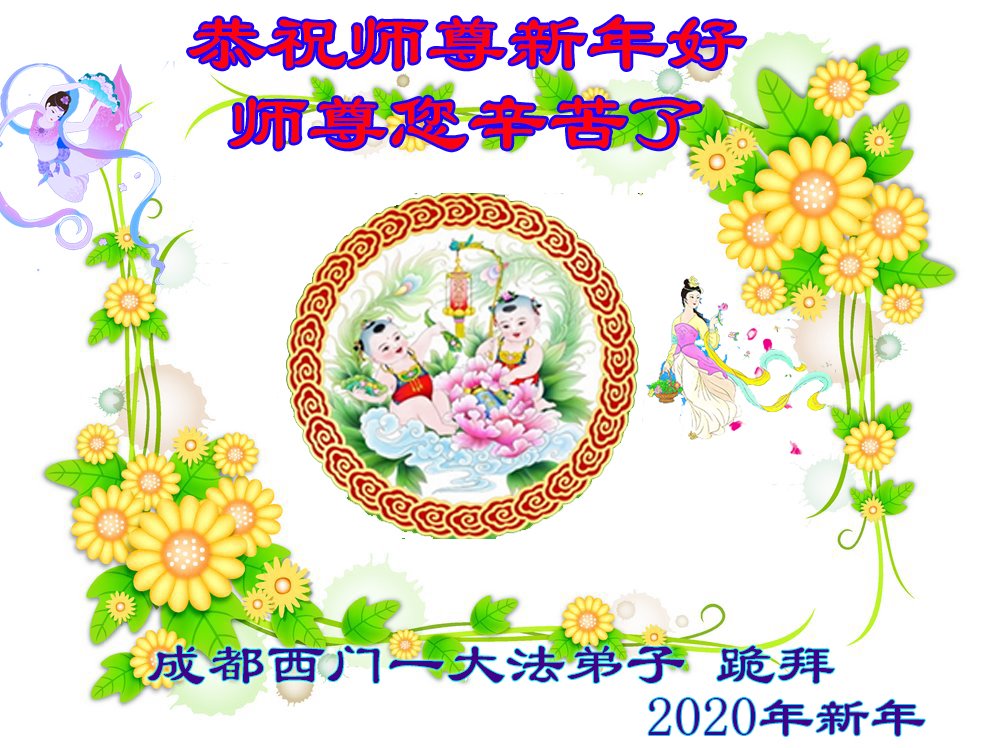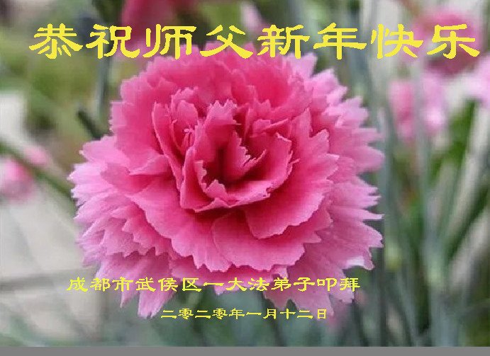 恭祝师尊新年快乐! 在新的一年里,弟子要更加精進,做好三件事,跪拜师恩。 成都市武侯区一大法弟子敬上 二零二零年一月十三日 四川省成都市武侯区一大法弟子恭祝师尊新年快乐!