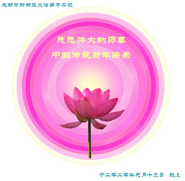 新年来临之际,感恩师尊无时无刻对众弟子的操劳,师尊您辛苦了,弟子无论以任何方式都无以回报师尊。所有的感恩汇成一句祝愿:恭祝慈悲伟大的师尊新年快乐!新年好! 四川省成都市新都区大法弟子恭祝师尊中国传统新年快乐!