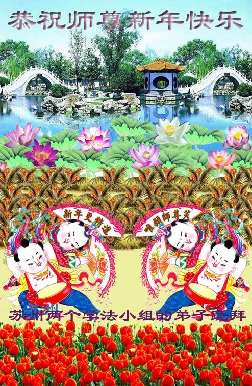 恭祝师父新年快乐! 叩谢师尊救度之恩 江苏省常州市两人学法小组弟子叩拜 江苏省苏州市全体大法弟子恭祝师父新年好!