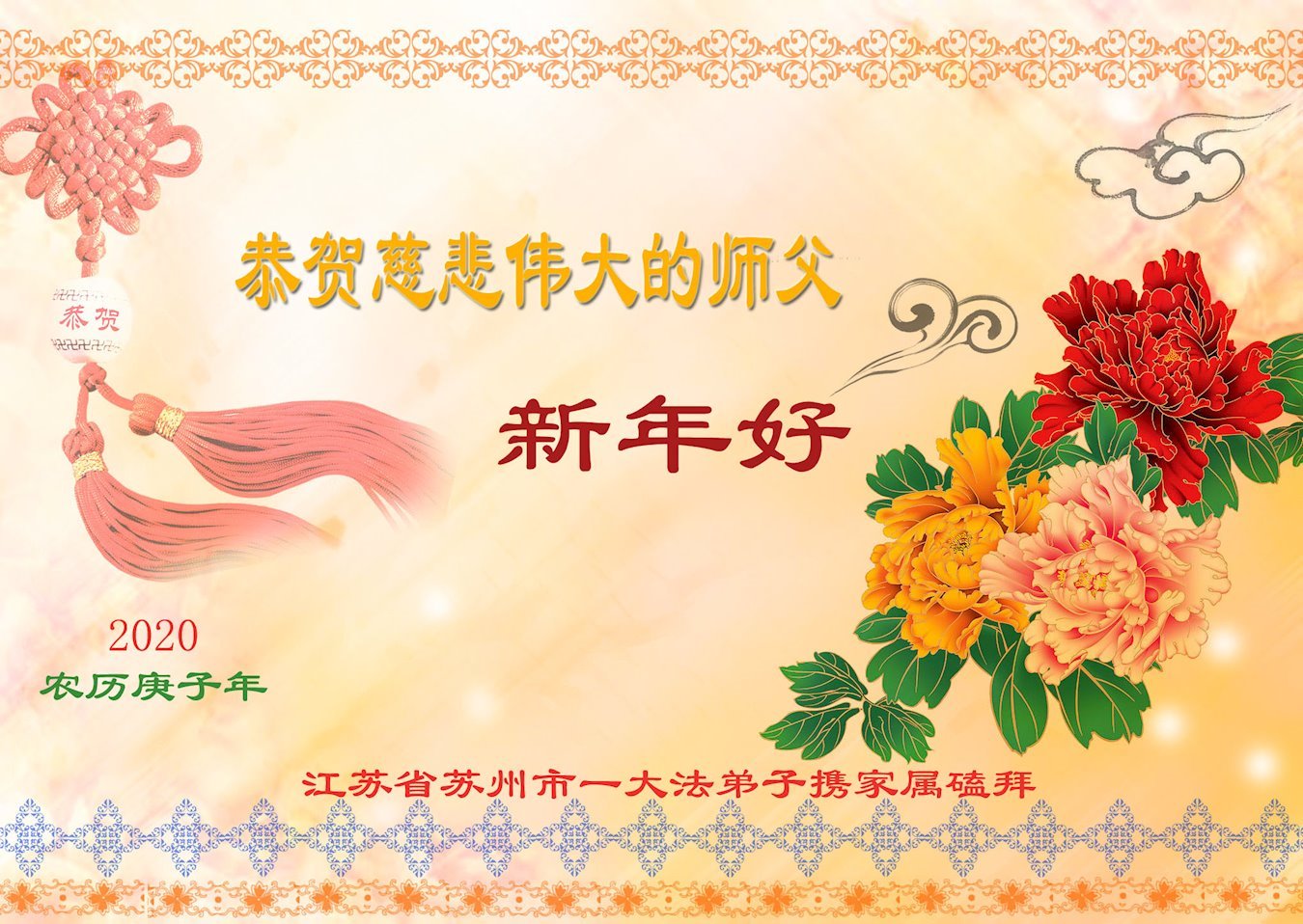 【明慧网二零二零年一月二十一日】 江苏省南通市崇川区大法弟子恭祝慈悲伟大的师父过年好!