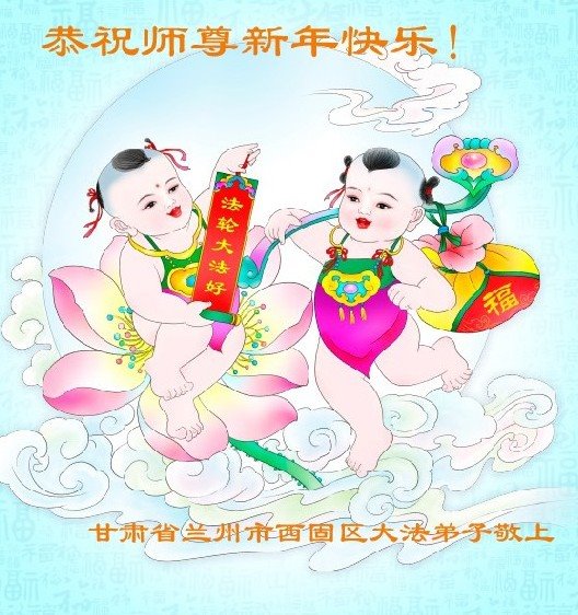 甘肃省兰州市大法弟子恭祝慈悲伟大的师尊新年快乐!