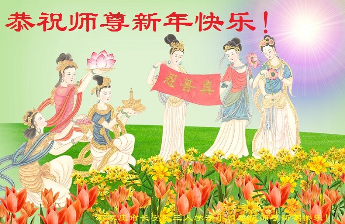 河北省石家庄沿东小区、东方阳光园大法弟子及母女三人大法弟子给师父拜年了!恭祝师尊新年好!
