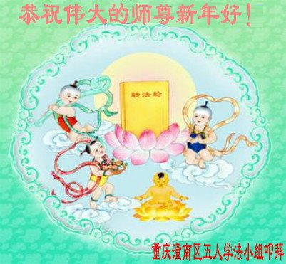师父新年好!弟子及家人感恩师父佛恩浩荡!我们听您的话,修好自己,做好三件事,证实大法,多救众生!重庆市五名大法弟子及家人敬上! 重庆市潼南区一大法弟子恭祝师尊新年好!