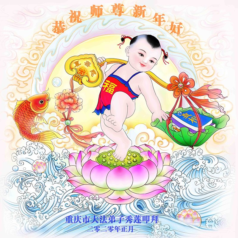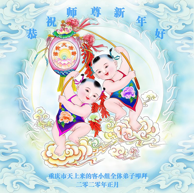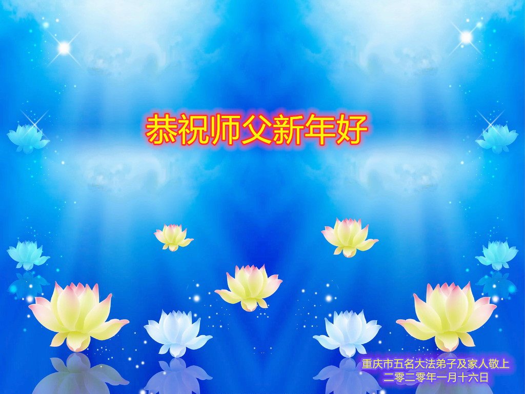 慈悲伟大的师父您好!在二零二零年皇历新年到来之际,弟子恭祝师父新年快乐!师父过年好!弟子叩谢师父洪恩! 新的一年又来到,人心执着全抛掉。 勇猛精進走正路,救人除恶传捷报。 重庆市五名大法弟子及家人恭祝师父新年快乐!