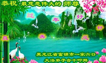我们共同促進,共同升华,跟上正法進程,谢谢师父! 黑龙江省佳木斯市富锦市一家六口大法弟子共同祝愿慈悲伟大的师父过年好!