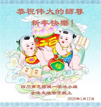 四川南充西城一学法小组全体大法弟子恭祝伟大的师尊新年快乐!