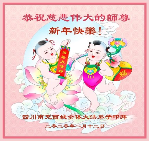 【明慧网二零二零年一月二十一日】 四川省南充市阆中市全体大法弟子给师尊拜年!恭祝师尊新年快乐!