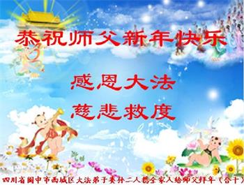 感谢师父的慈悲保护!感谢师父的正念加持!千言万语也道不尽对师父的感恩,弟子唯有做好三件事多救人让师父多一份欣慰,少一份操劳! 四川遂宁大法弟子叩拜恩师过年好!