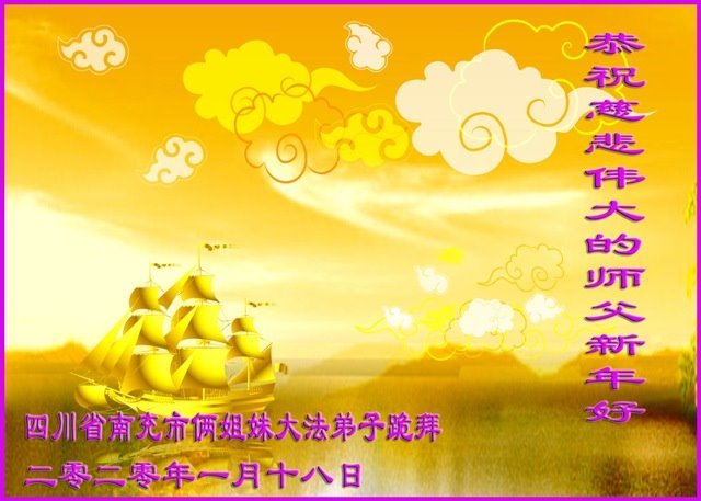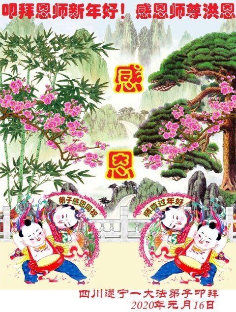 中国传统大年,尤为隆重。每到此刻感慨万千,深感师恩浩荡,弟子总无以回报。千万年的苦苦等待,幸得恩师洪传大法,接上圣缘。立志坚修大法,深感大法智慧无限。找回自我,迷途知返,脱离苦海,返回家园。这一切是师父给予弟子的洪大佛恩无限。每当大年来临,弟子思绪万千,恩师佛恩浩荡,师恩真是无以回报。唯有谨遵师命,精進实修,牢记宏愿,“三件事”绝不懈怠,紧跟师尊正法進程,做一个师尊承认的正法时期的“大法弟子”。让师尊少一份操心。 弟子在此叩谢师恩!叩拜恩师过年好!唯望恩师好好过一个中华民族的传统大年! 四川遂宁大法弟子叩拜 2020年元月15日 四川省南充市俩姐妹大法弟子恭祝慈悲伟大的师父新年好!