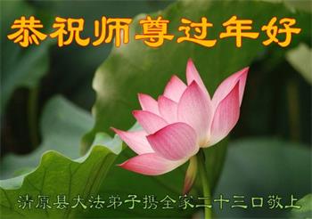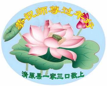 辽宁省抚顺市清原县大法弟子一家三口恭祝师尊过年好!