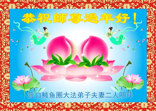 辽宁省营口鲅鱼圈大法弟子夫妻二人叩拜恭祝师尊过年好!