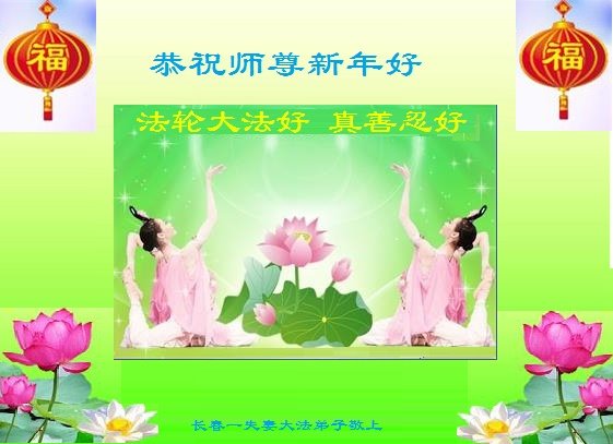 师尊您好!在新的一年,弟子一定要修好自己,遇事向内找,多学法、多救人、做好三件事来报答师尊的慈悲苦度。 吉林省长春市夫妻大法弟子恭祝师尊新年快乐!