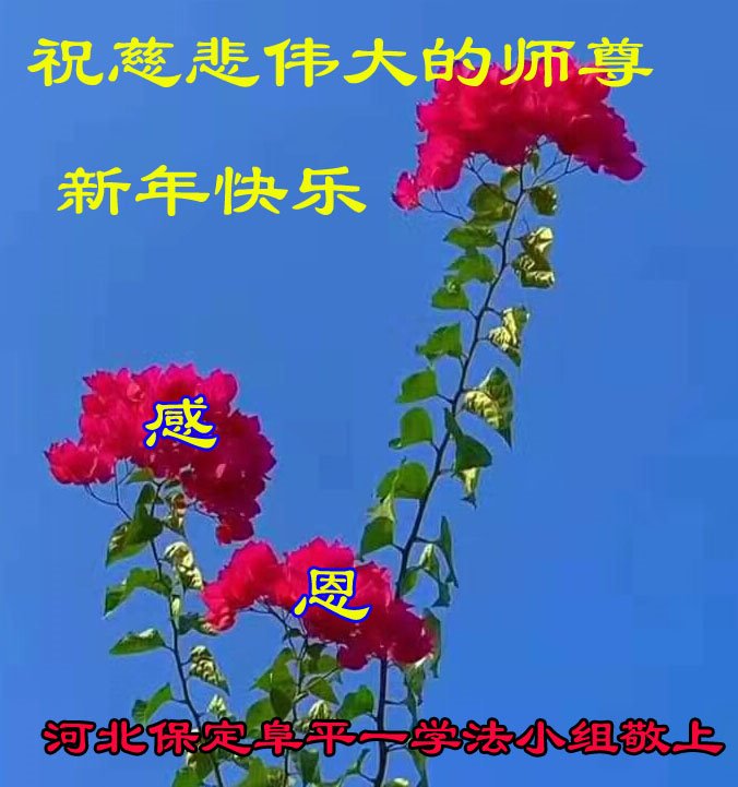 阜东全体大法弟子恭祝慈悲伟大的师尊新年快乐!感恩师尊慈悲苦度,每逢佳节倍思亲。愿师尊多一份欣慰,少一份操劳。 河北省保定市涞水镇石亭乡一学法小组大法弟子恭祝慈悲伟大的师尊新年快乐!