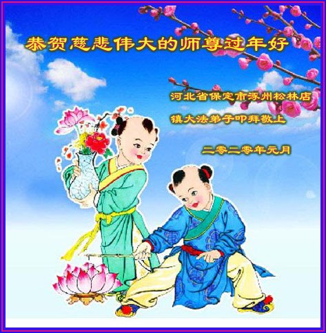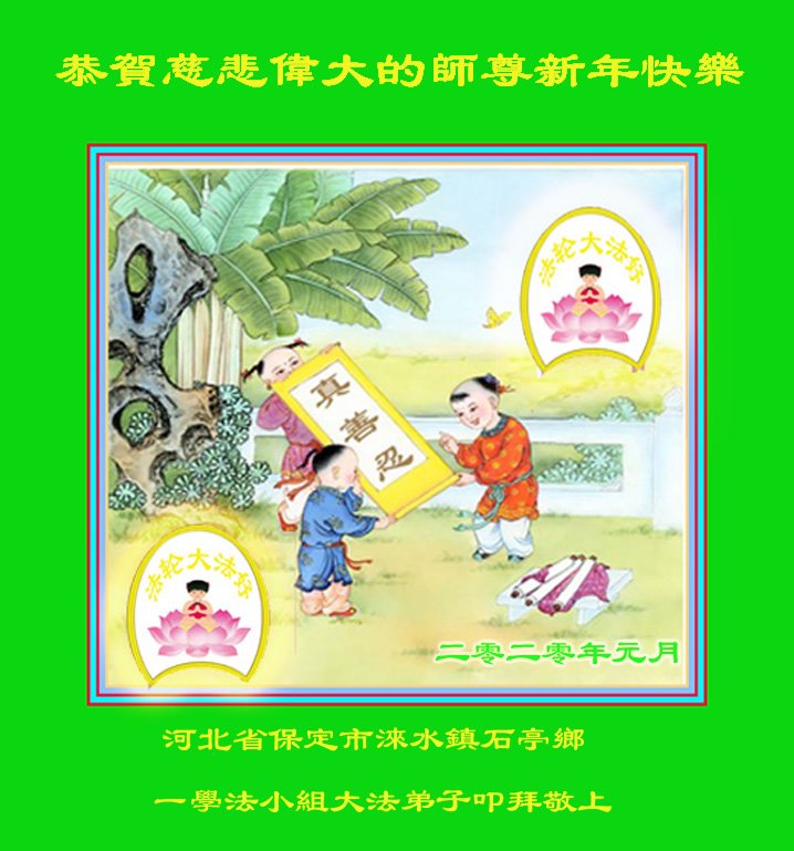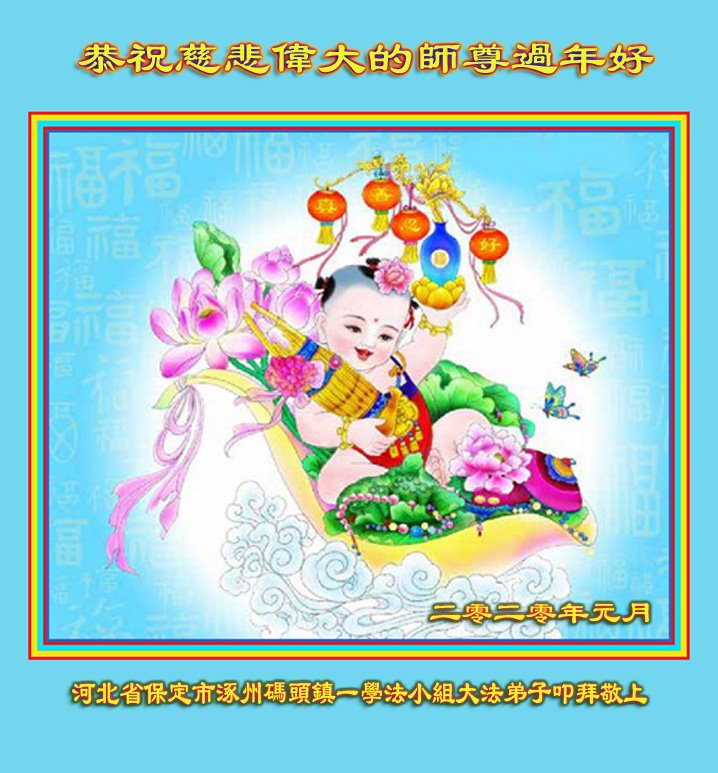 河北省保定市涞水县一大法弟子叩拜敬上 二零二零年元月 河北省保定市涿州码头镇一学法小组大法弟子恭祝慈悲伟大的师尊过年好!