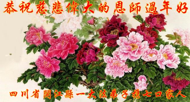 在新的一年里,弟子们一定走好最后的路,珍惜时间,学好法,背好法,时时以法为师,坚定正念。不受外来邪恶干扰,互相帮助,共同配合,发好正念,做好救人的事,圆满跟师父回家! 四川省达州市开江县一大法弟子携七口家人恭祝慈悲伟大的恩师过年好!