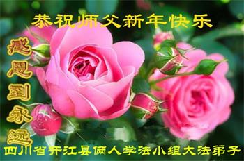 四川省达州市开江县两人学法小组大法弟子恭祝师父新年快乐!
