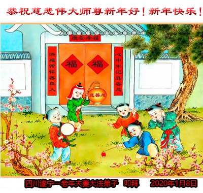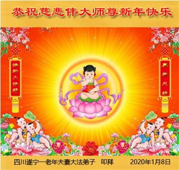 四川遂宁一老年夫妻大法弟子恭祝慈悲伟大的师尊新年快乐!