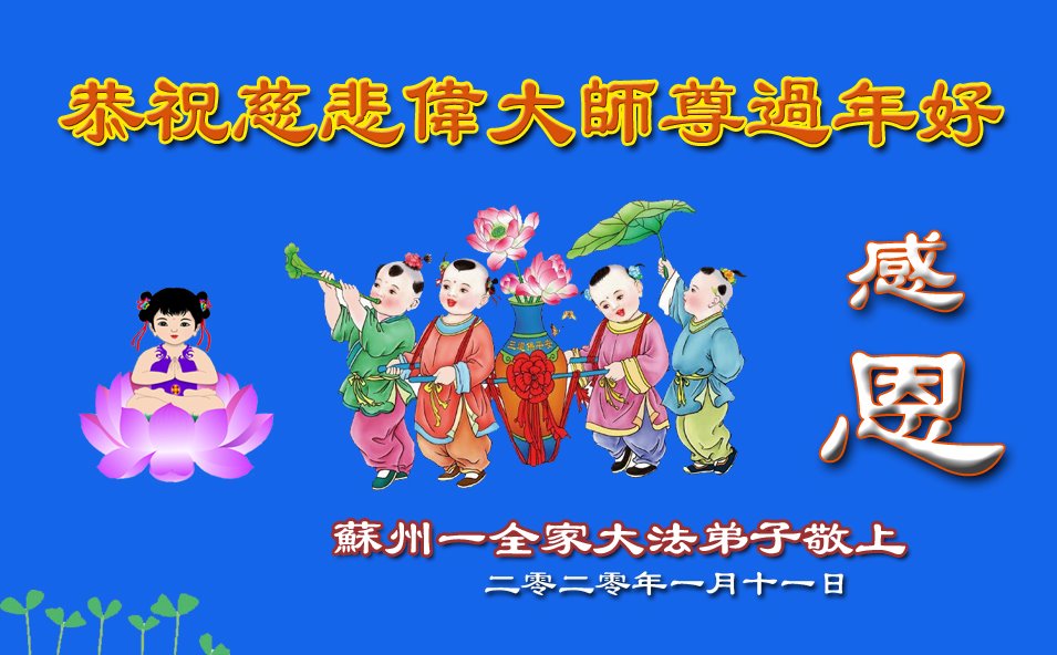 【明慧网二零二零年一月二十二日】 江苏省苏州一全家大法弟子恭祝慈悲伟大师尊过年好!