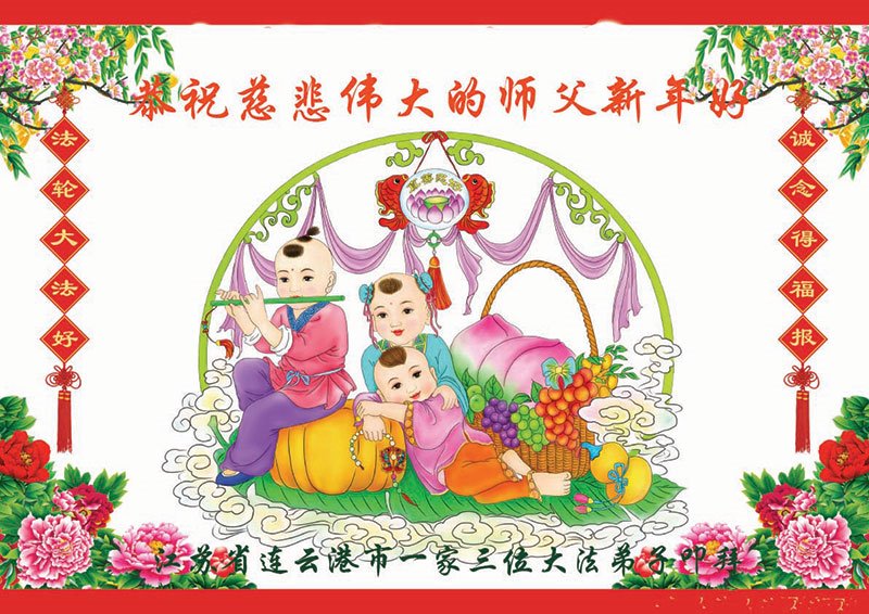 江苏省连云港市一家三位大法弟子恭祝慈悲伟大的师父新年好!