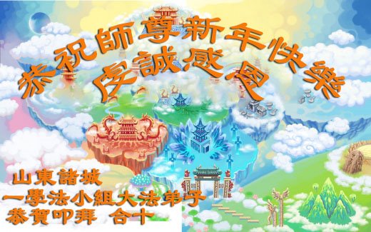 山东潍坊诸城市一学法小组大法弟子恭祝慈悲伟大师尊过年好!