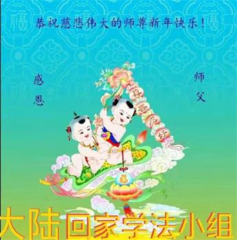 慈悲伟大的师尊:新年好! 弟子挥泪叩拜师尊!一年半多的背法,让弟子深深感受到,您就在弟子身边时时看护着弟子、保护着弟子、点悟着弟子,感激之情无以言表,弟子唯有听师尊话,精進、再精進!做好三件事,兑誓约。 辽宁义县大法弟子 敬上 二零二零年一月十七日 辽宁省锦州市义县一学法小组大法弟子恭祝师父新年快乐!