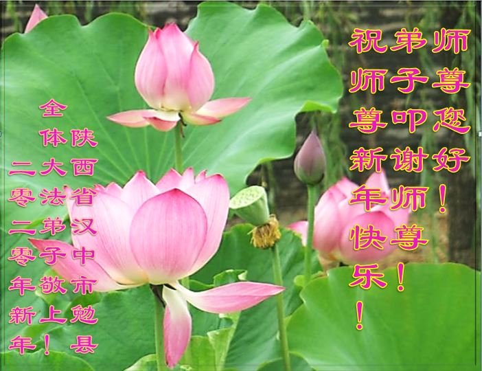 陕西省汉中市南郑区大法弟子恭祝师父二零二零年新年快乐! 在新的一年里,精進实修,决不辜负师父的慈悲救度! 陕西省宝鸡市全体大法弟子恭祝您新年快乐!