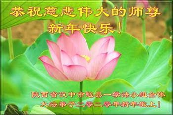 陕西省汉中市勉县一学法小组全体大法弟子恭祝慈悲伟大的师尊新年快乐!