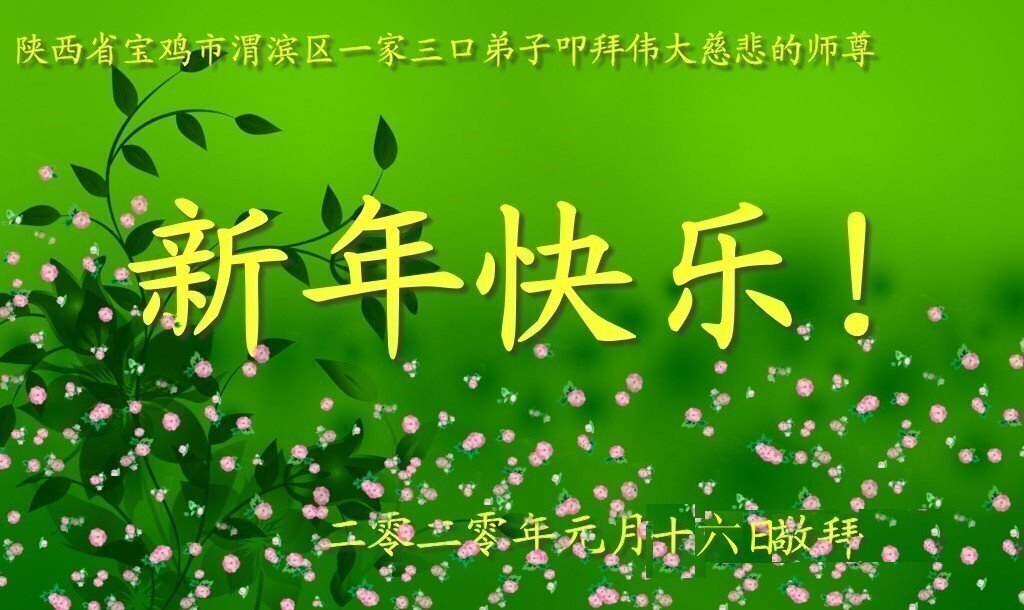 陕西省宝鸡市渭滨区一家三口大法弟子恭祝师尊新年快乐!