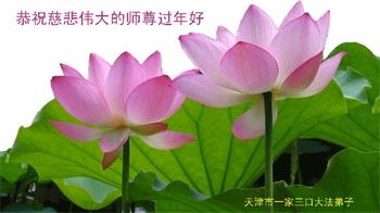 师父新年快乐!师尊您辛苦了, 天津一老年大法弟子全家恭祝师父过年好!