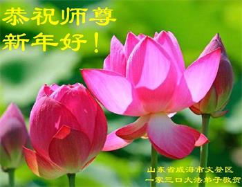 师尊新年好!您辛苦了! 山东省威海市文登区一家三口大法弟子恭祝慈悲伟大的师尊新年好!